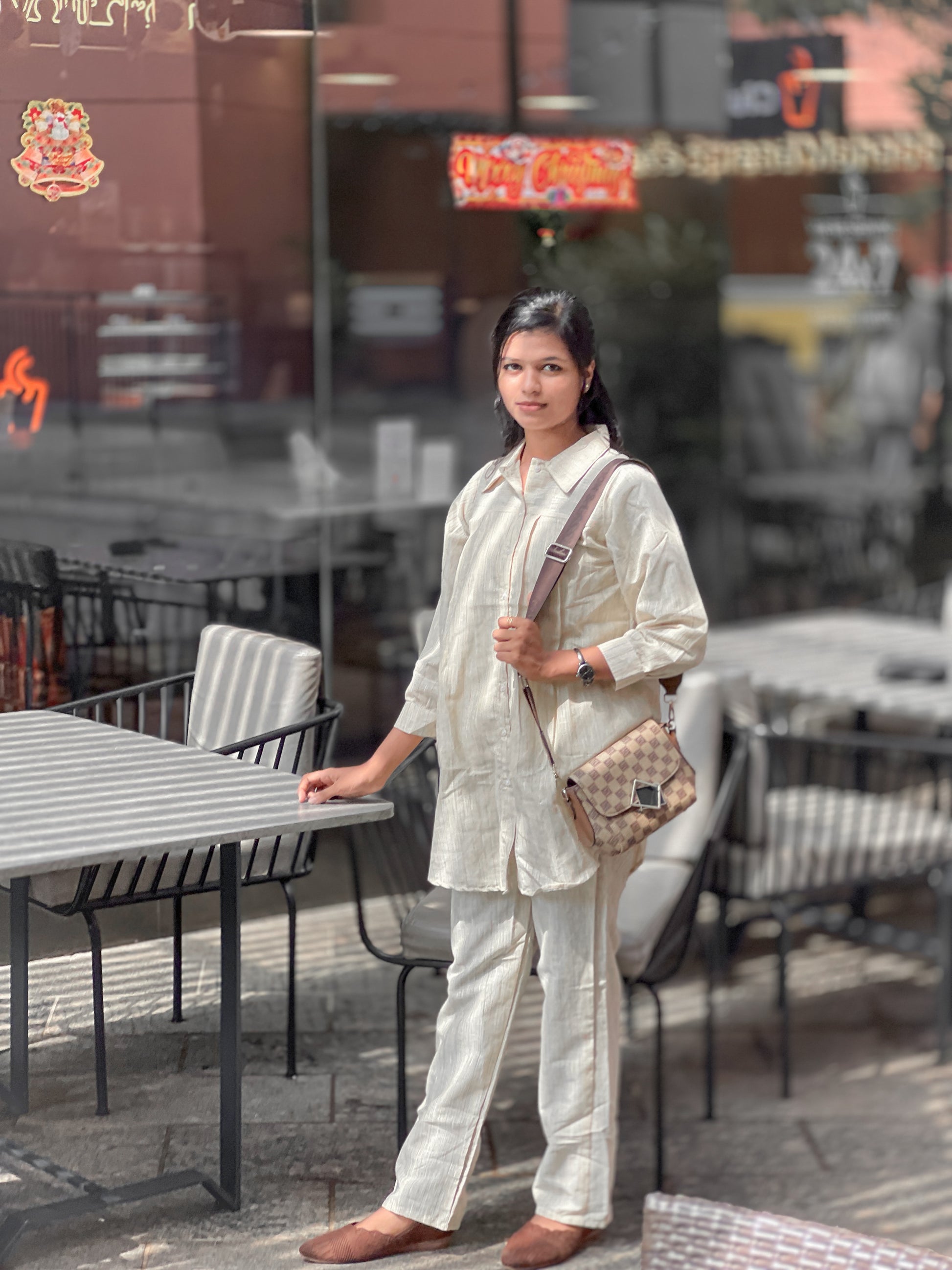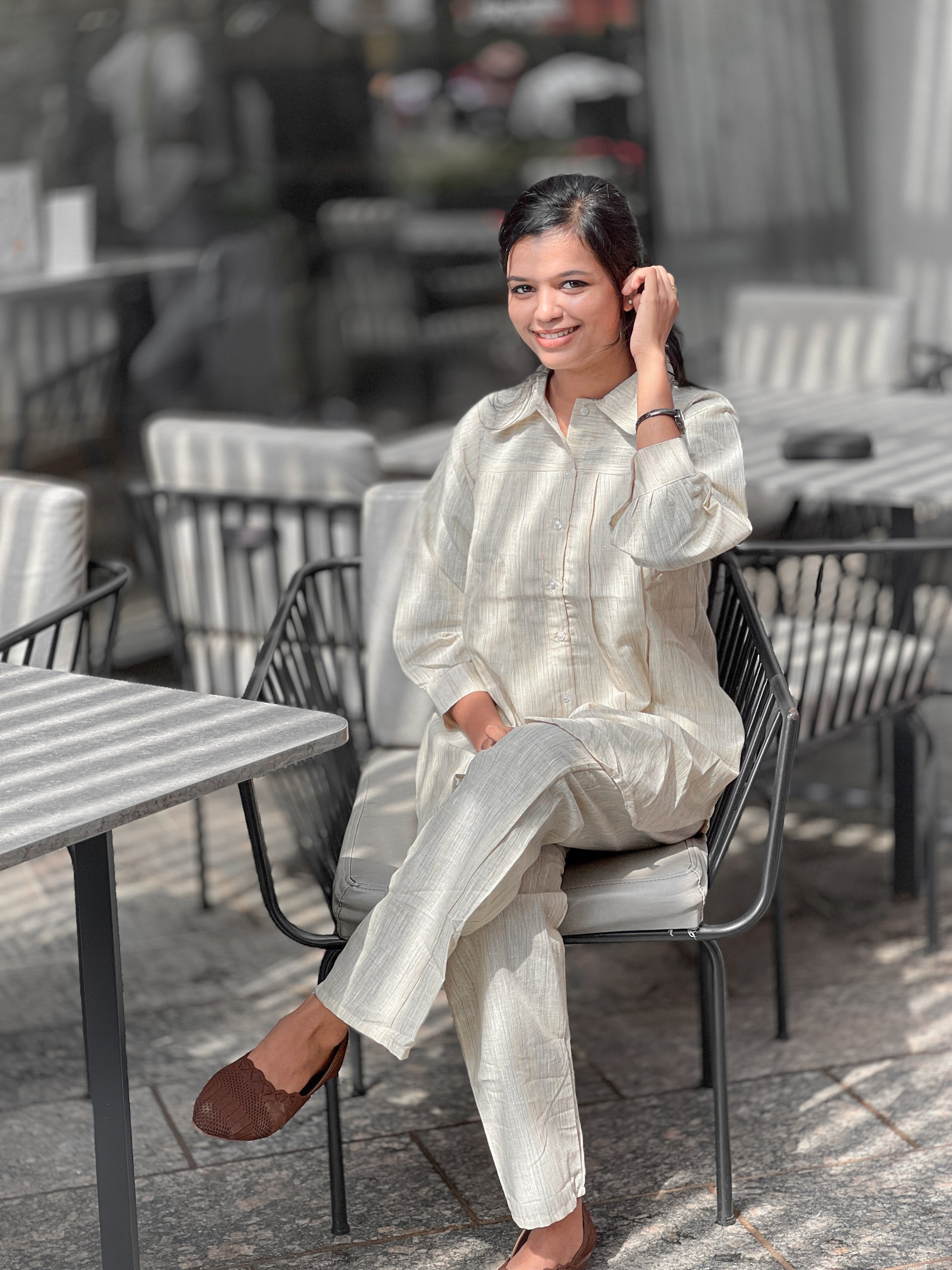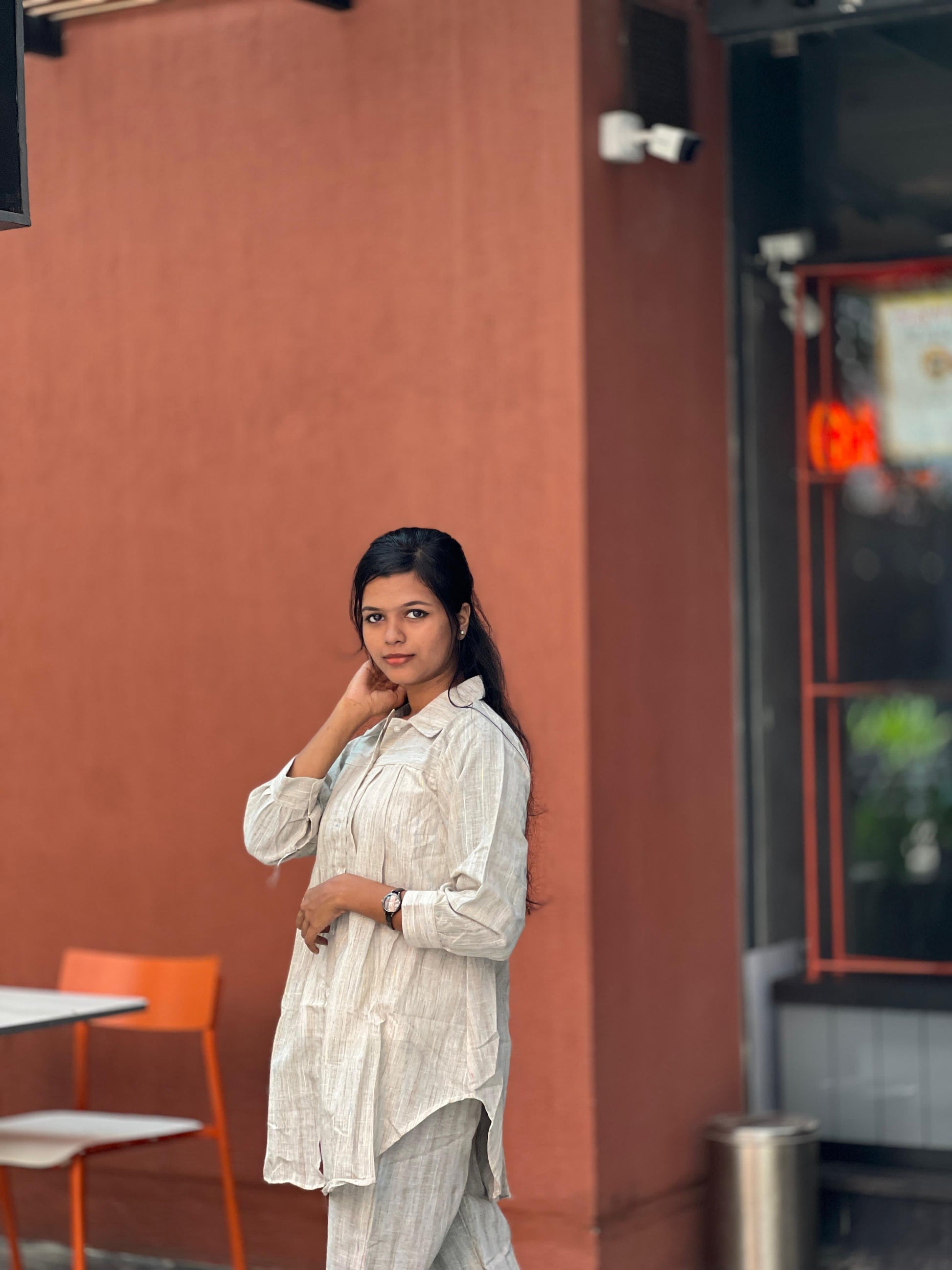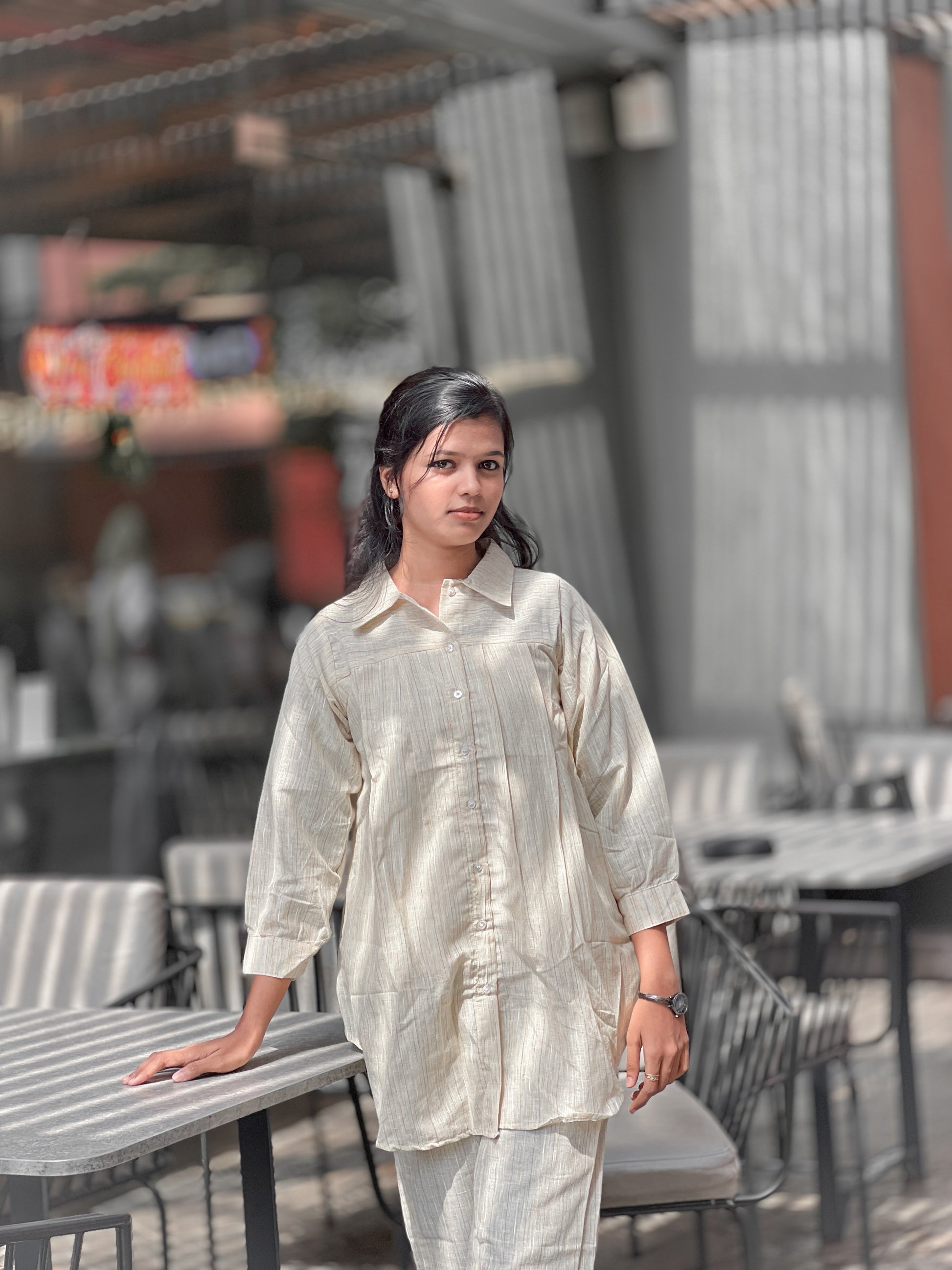 Experience effortless elegance with our beige linen co-ord set. This two-piece ensemble features a relaxed-fit long top and tailored straight-cut trousers, perfect for casual outings or semi-formal events. Crafted from premium, breathable linen, it ensures all-day comfort and a timeless look. Pair it with minimal accessories to create a chic, polished appearance. Ideal for those who value style and simplicity.
